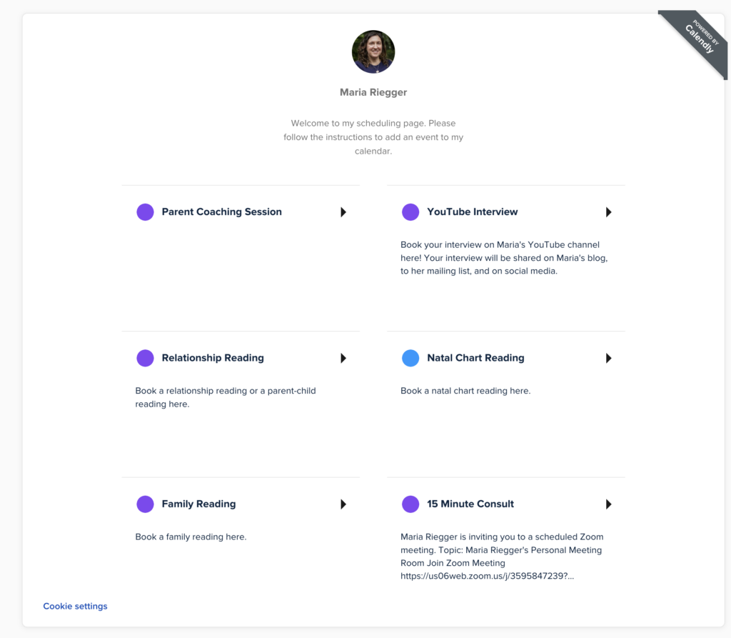 Whether you’re scheduling parent coaching, an astrology reading, a family session, or an interview, use the calendar below to choose the service that fits your needs.